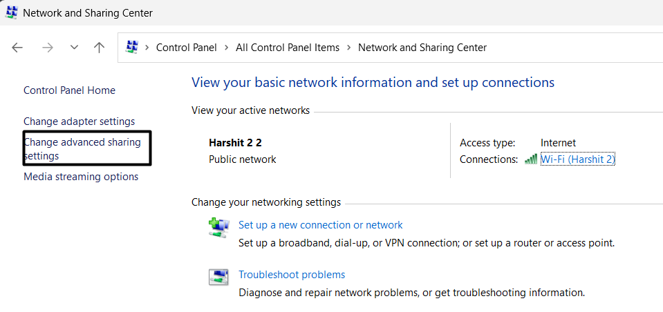 Um die Datei- und Druckerfreigabe auf Ihrem Windows 11-PC zu aktivieren, gehen Sie zum genannten Pfad: