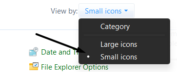 1.Starten Sie dieBedienfeld Programmauf Ihrem PC und stellen Sie die einAnzeigen von:Option zuKleine Symbole.