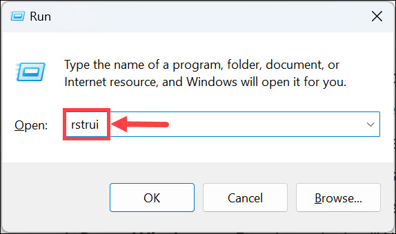2.Geben Sie diesen Befehl ein, um das Fenster „Systemwiederherstellung“ zu öffnen:anweisen