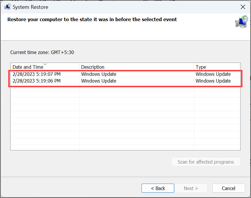 Windows 11 erstellt jedes Mal automatisch Wiederherstellungspunkte, wenn Sie eine App installieren oder größere Änderungen am System vornehmen. Wenn das Problem durch eine App oder kürzlich vorgenommene Änderungen verursacht wird, kann das Wiederherstellen Ihres PCs in einen früheren Zustand helfen, das Problem zu beheben.
