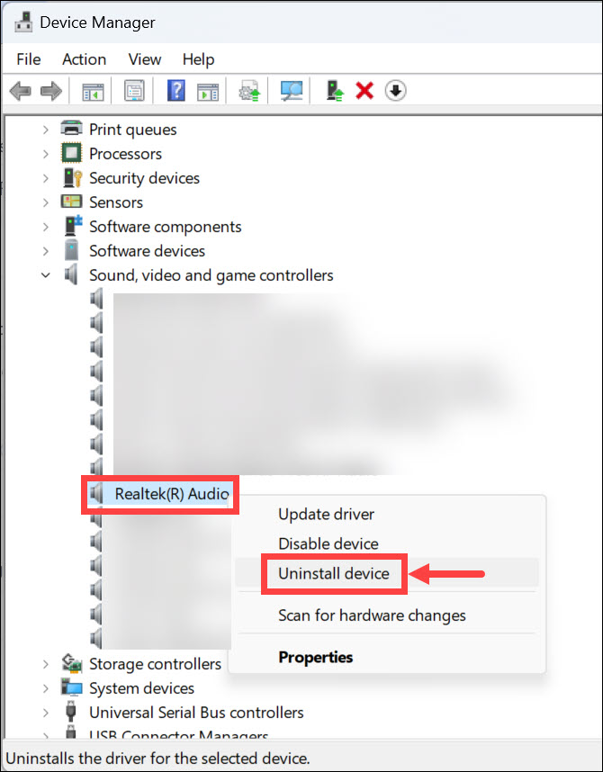 3.Klicken Sie mit der rechten Maustaste aufRealtek(R)-Audiound auswählenGerät deinstallieren.