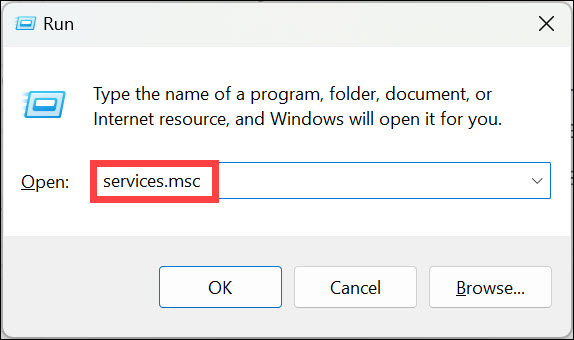 1.Drücken Sie gleichzeitig die Tasten Windows + R und geben Sie „dienstleistungen.msc” in das Feld Ausführen. Drücken SieEingeben, um das Fenster „Dienste“ zu öffnen.