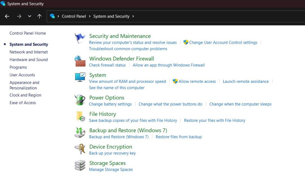 Tippen Sie im Fenster der Systemsteuerung auf die Kategorie „System und Sicherheit“.