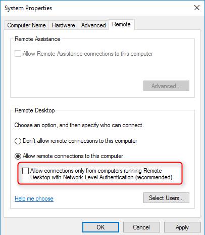 Lösung 3: Deaktivieren Sie die Authentifizierung auf Netzwerkebene