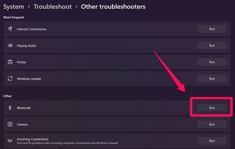 7. Führen Sie die Bluetooth-Fehlerbehebung in Windows 11 aus
