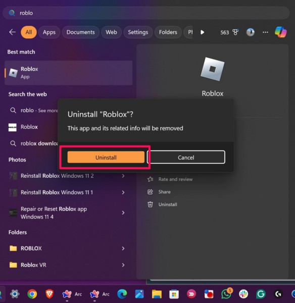 8. Installieren Sie die Roblox -App auf Ihrem Windows 11 -PC oder Laptop neu
