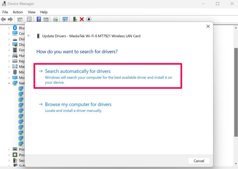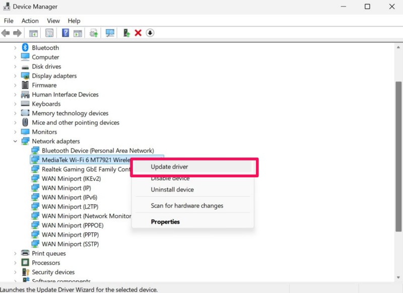 3. Aktualisieren Sie den Netzwerkfahrer auf Ihrem Windows 11 -PC oder Laptop