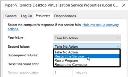 6.Stellen Sie die einZweiter MisserfolgDropdown zuStarten Sie den Dienst neuund klicken Sie aufAnwendenKlicken Sie auf die Schaltfläche, um die Änderungen zu speichern.