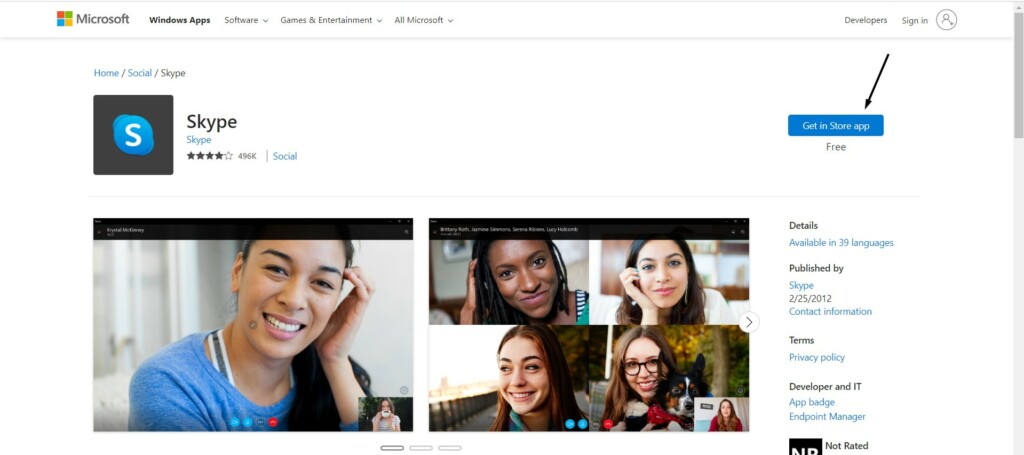 3.Klicken Sie nach der Deinstallation aufGehen Sie zur Microsoft Store-Seite von Skype und klicken Sie aufHolen Sie sich die Store-App.