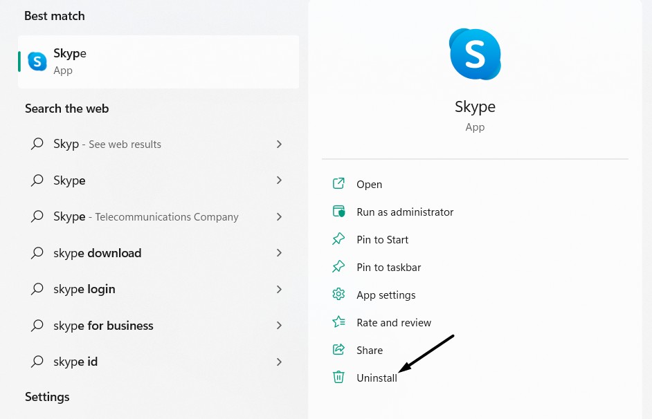 Wenn die Skype-App auf Ihrem Windows 11-PC ständig abstürzt, versuchen Sie esÖffnen Sie es als Administrator. Wenn Ihnen dies nicht hilft, das Problem zu beheben, erwägen Sie eine Aktualisierung oder Neuinstallation auf Ihrem PC.