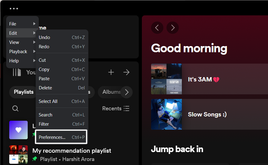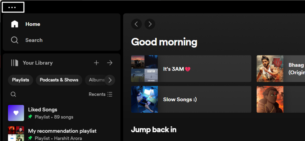 1.Öffnen Sie dieSpotify-Appauf Ihrem PC und wählen Sie die ausdrei Punkte (…)in der oberen rechten Ecke davon.