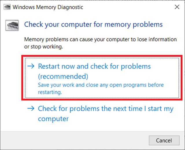 3.Klicken Sie dannStarten Sie jetzt neu und prüfen Sie, ob Probleme vorliegenOption, um nach Speicherproblemen in Ihrem System zu suchen.