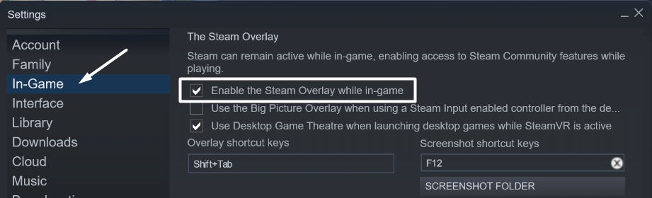 3.Stellen Sie abschließend sicher, dass das Kontrollkästchen neben dem aktiviert istSteam-Overlay im SpielOption ist in der aktiviertDas Steam-OverlayAbschnitt.