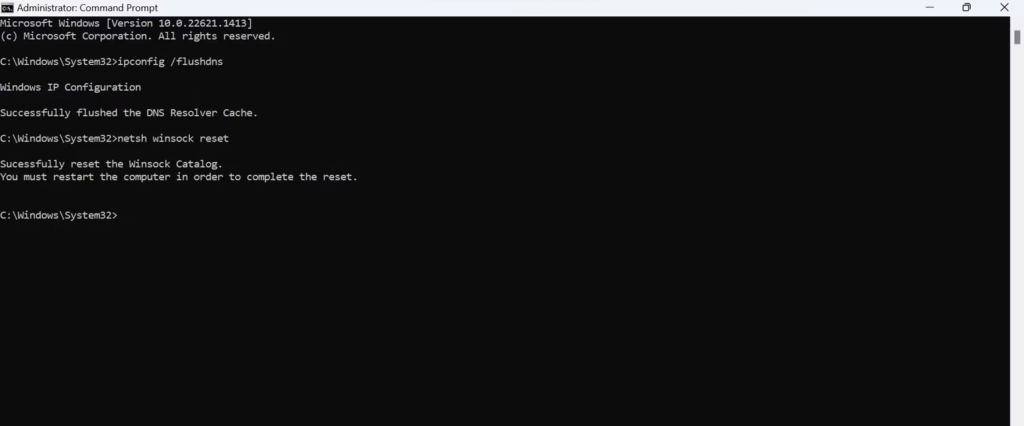 Methode 4: Die Netzwerkeinstellungen sollten zurückgesetzt und der DNS-Cache geleert werden
