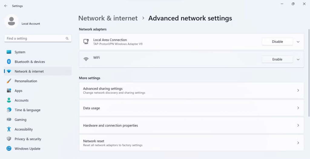 Schritt 6:ImWindows-EinstellungenApp, wählen Sie Ihre Internetverbindung aus und klicken Sie dannAktivieren.