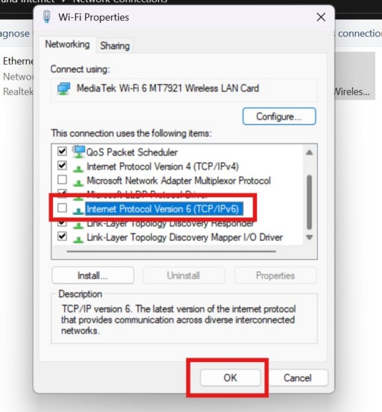 6. Deaktivieren Sie das IPV6-Protokoll auf Ihrem Windows 11-PC oder Laptop