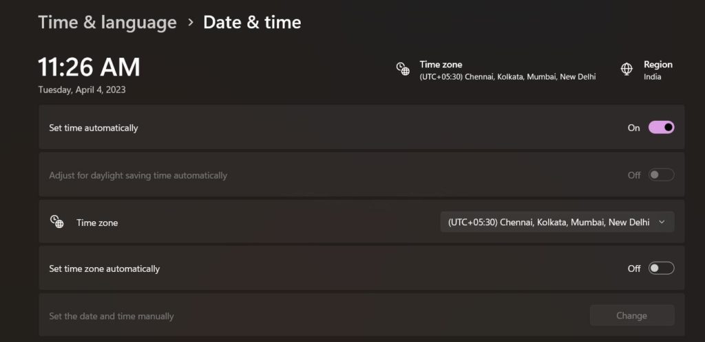 Falsche Datums- und Uhrzeiteinstellungen auf Ihrem PC können dazu führen, dass die Zertifikate des Systems ungültig werden, was die Funktionalität des Windows Store und anderer Anwendungen beeinträchtigen kann. Um dieses Problem zu beheben, müssen Sie zunächst sicherstellen, dass Datum und Uhrzeit Ihres PCs richtig eingestellt sind.
