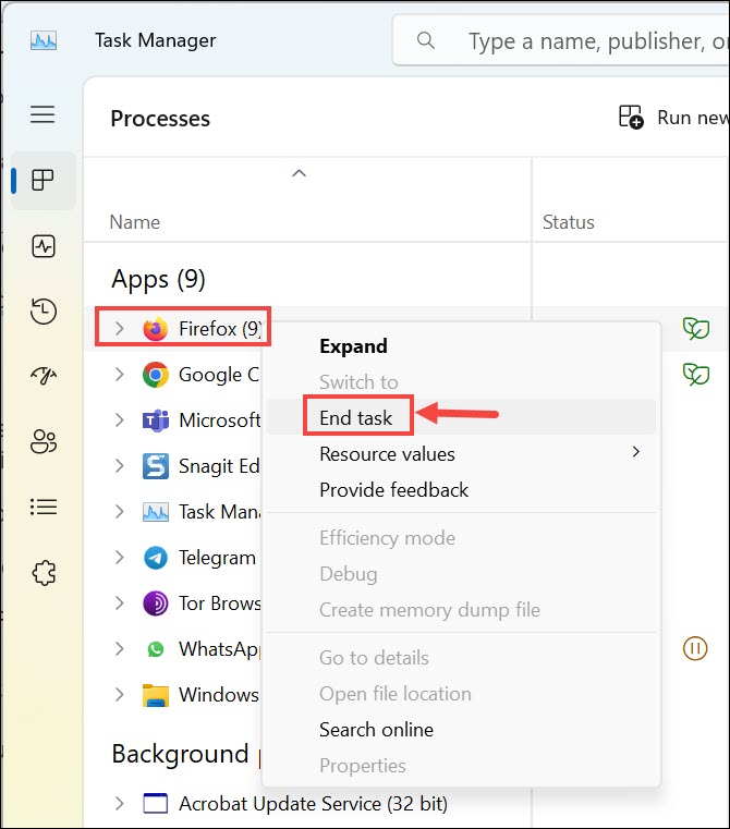 2.Suchen Sie unter „Firefox“.ProzesseTab.