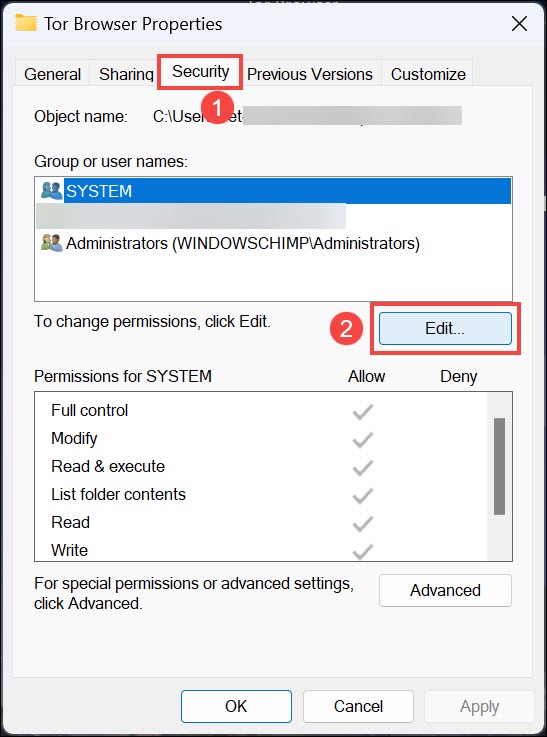 7. Weisen Sie dem Tor-Browser-Ordner die Vollzugriffsberechtigung zu