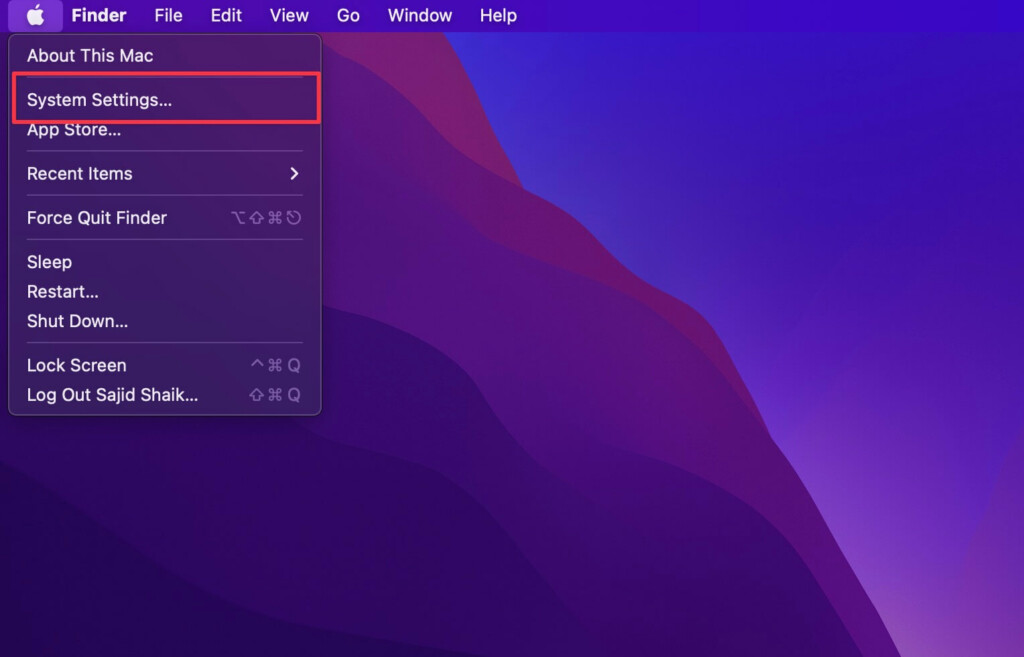1.Klicken Sie aufApple-Menüoben links auf Ihrem Bildschirm und wählen Sie ausSystemeinstellungenaus dem Dropdown-Menü.