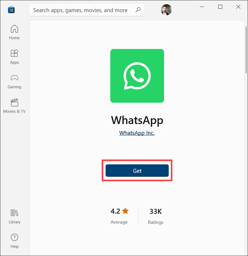 7.Suchen Sie nach demWhatsAppApp im Microsoft Store und klicken Sie aufErhaltenTaste.