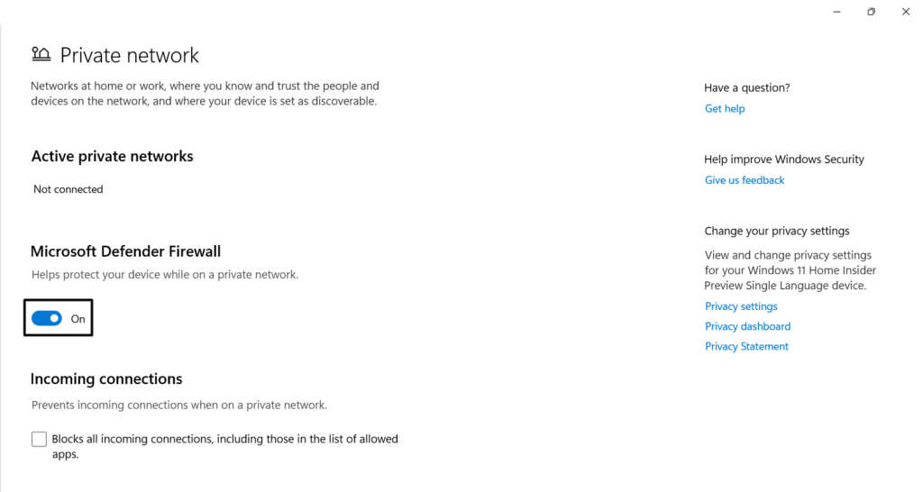 Wenn der Flugzeugmodus für dieses Problem kein Problem darstellt, könnte es an der Windows Defender-Firewall Ihres PCs liegen. Daher empfehlen wir Ihnendeaktivieren Sie esauf Ihrem System, um zu überprüfen, ob es dasselbe ist.