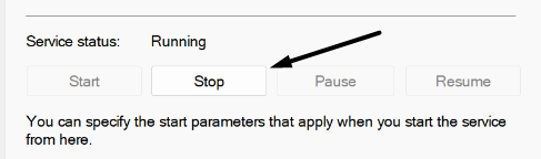 3.Klicken Sie dann aufStoppenSchaltfläche unter demServicestatusAbschnitt, um es zu stoppen, und klicken Sie dann aufStartum es neu zu starten.