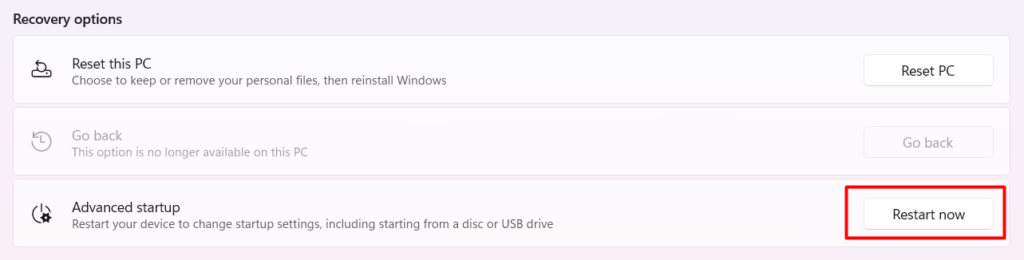 2.Klicken Sie aufStarten Sie jetzt neuKlicken Sie auf die Schaltfläche neben der Option „Erweiterter Start“.