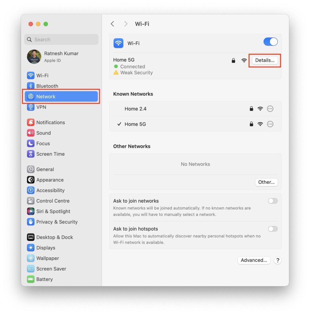 in der linken Seitenleiste und wählen Sie im rechten Bereich WLAN aus.Details4. Sie finden Ihr verbundenes Wi-Fi-Netzwerk, klicken Sie auf