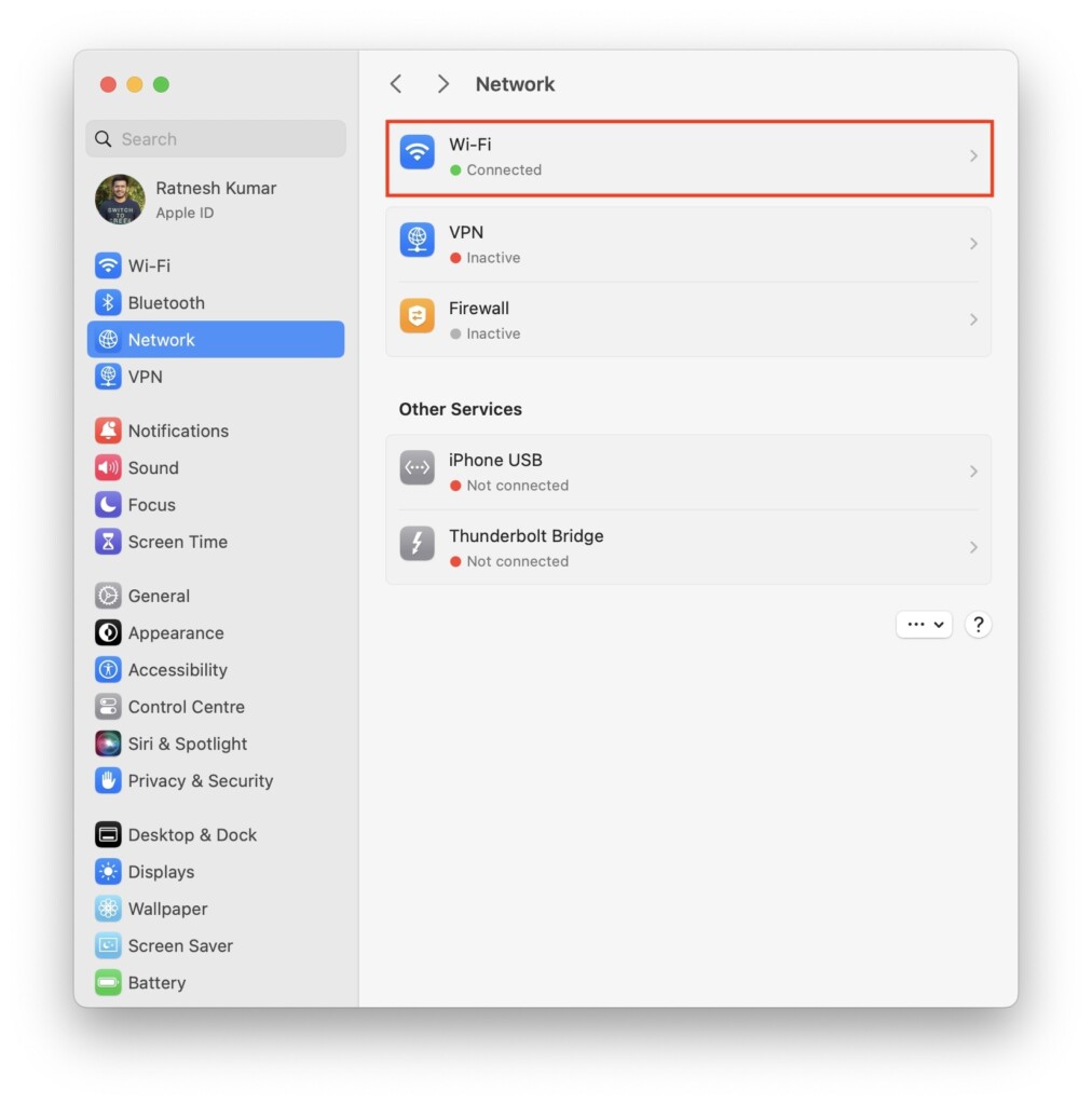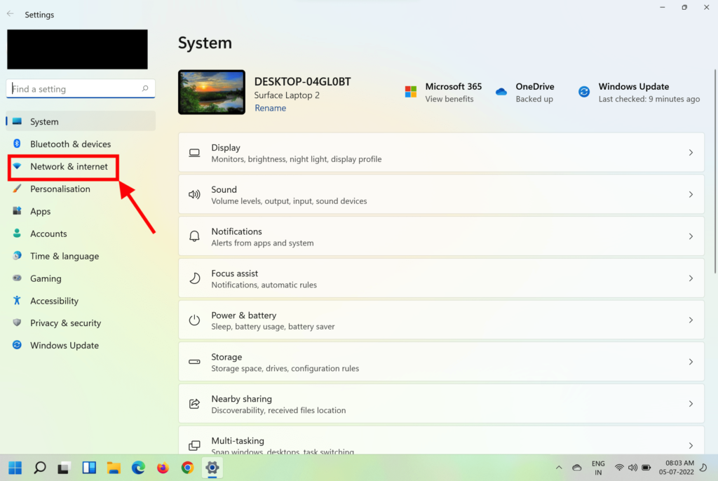 .Erweitertes Netzwerk2. Klicken Sie aufNetzwerk & InternetOption in der Seitenleiste und wählen Sie