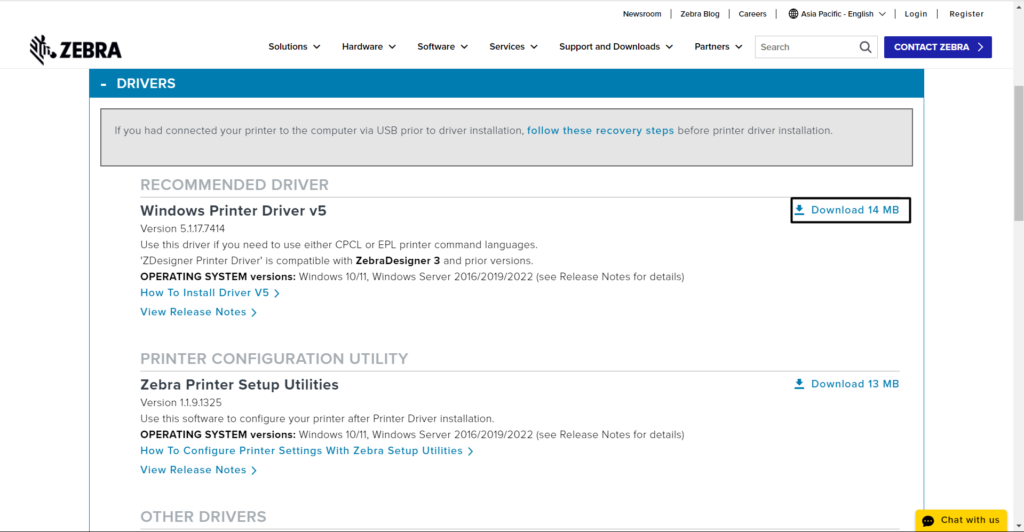 Auch veraltete Druckertreiber könnten der Grund dafür sein, dass Ihr Zebra-Drucker nicht funktioniert. Also,Laden Sie die neuesten Treiber für Ihren Zebra-Drucker herunterund installieren Sie sie, um zu sehen, ob das Problem dadurch behoben wird. Sie können dasselbe anwenden, indem Sie die unten aufgeführten Anweisungen befolgen: