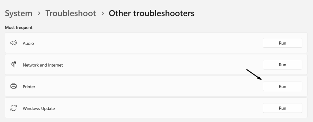 2.ImAndere FehlerbehebungenFenster, suchen nachDruckerimAm häufigstenAbschnitt.