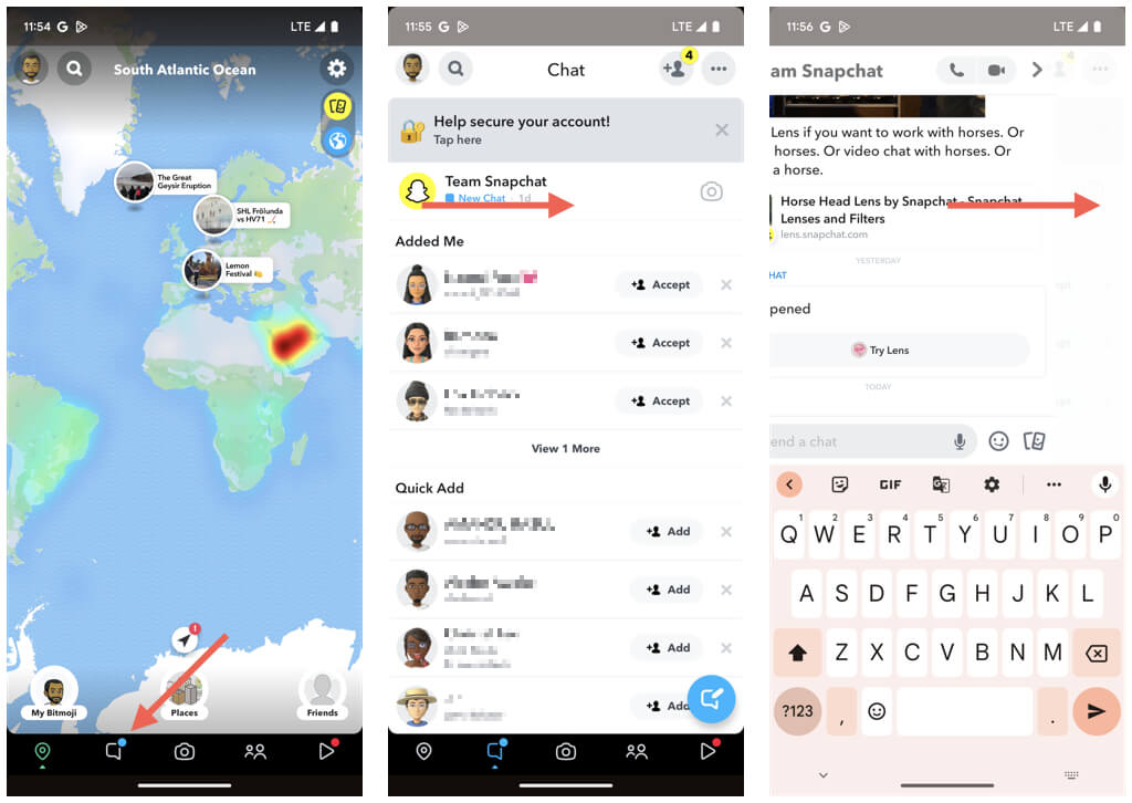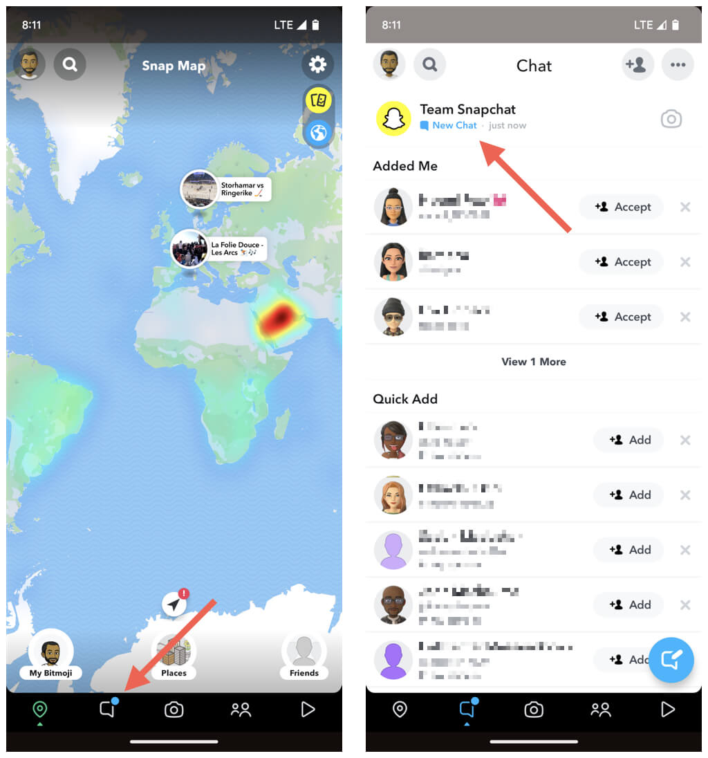 Sobald Sie dies getan haben, besuchen Sie den Chat-Bereich. Die gerade gelesenen Snapchat-Nachrichten sollten weiterhin als ungelesen angezeigt werden.