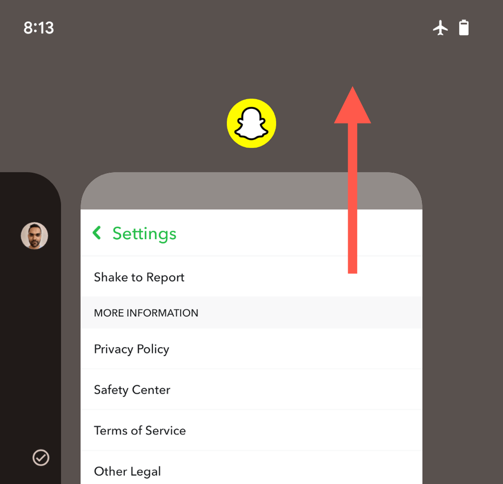 - Öffnen Sie den App Switcher auf Ihrem Telefon und erzwingen Sie das Beenden von Snapchat.