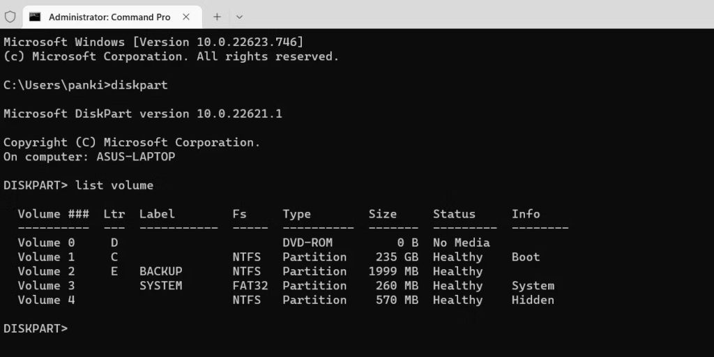 B. Diskpart-Befehl in Windows zum Ausblenden eines Laufwerks