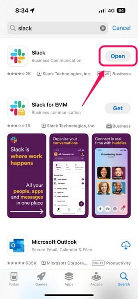 Wenn jedoch jemand schlau genug ist, im App Store auf Ihrem iPhone nach der App zu suchen, die Sie versteckt haben, erfährt er, dass Sie sie besitzen, da die App-Liste mit dem angezeigt wirdSchaltfläche „Öffnen“.statt derDownload-Schaltfläche. Beachten Sie dies also, wenn Sie in iOS 18 eine App auf Ihrem iPhone ausblenden.