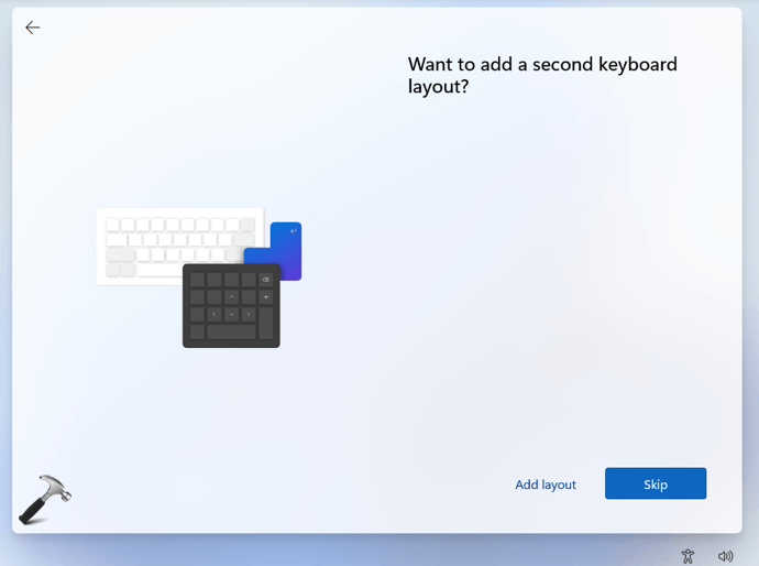 13.Wenn Sie ein zweites Tastaturlayout hinzufügen möchten, klicken Sie auf Layout hinzufügen, andernfalls klicken Sie auf Überspringen.