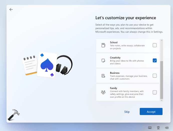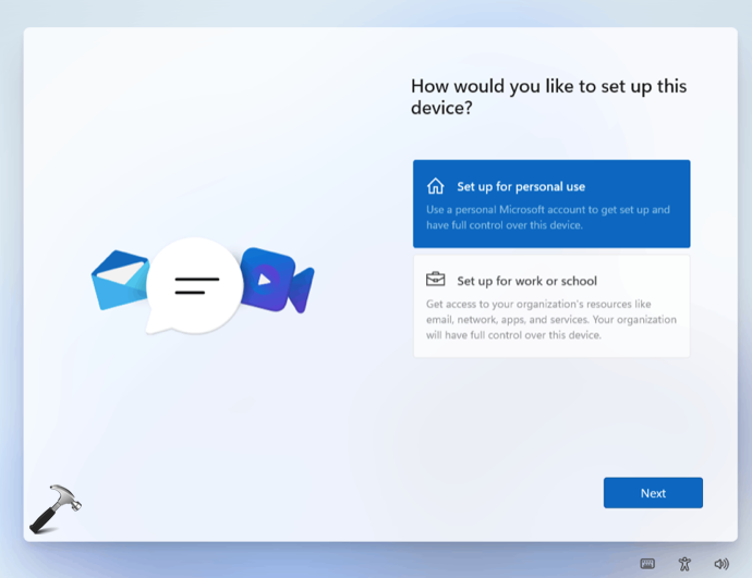 17.Anschließend müssen Sie auswählen, ob Sie das System für den persönlichen oder geschäftlichen/schulischen Gebrauch einrichten möchten. In diesem Beispiel haben wir ausgewähltFür den persönlichen Gebrauch eingerichtet.