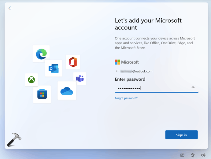19.Geben Sie als Nächstes das Passwort für Ihr Microsoft-Konto ein und klicken Sie auf Anmelden.