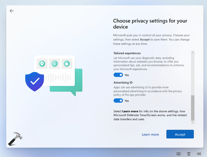 23.Treffen Sie unter Datenschutzeinstellungen Ihre Auswahl und klicken SieAkzeptieren.