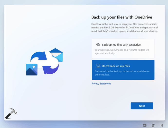 25.Wählen Sie unter Sichern Sie Ihre Dateien mit OneDrive aus, ob Sie Dateien sichern möchten.