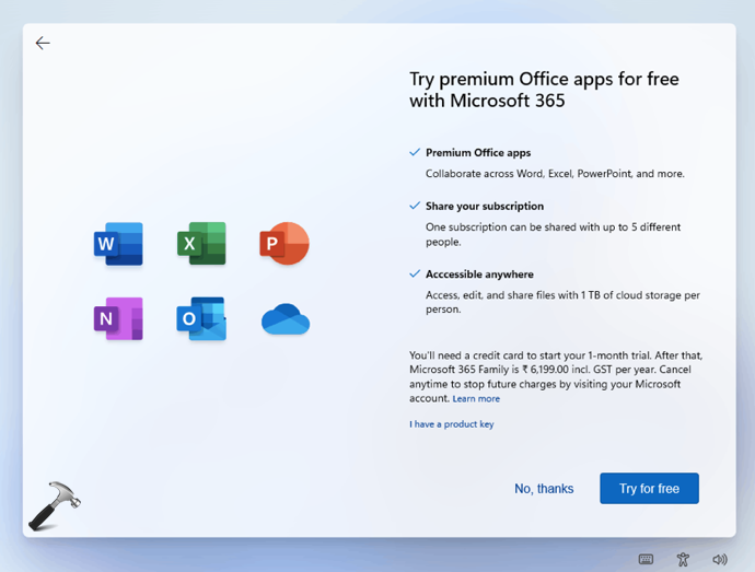 26.Wenn Sie Premium-Office-Apps ausprobieren möchten, wählen Sie „Kostenlos testen“ oder klicken Sie auf „Nein, danke“.