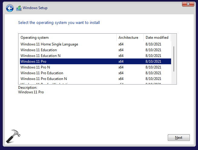 5.Wählen Sie nun im nächsten Bildschirm die Windows 11-Edition aus. Seien Sie hier vorsichtig und wählen Sie die Edition aus, für die Sie im vorherigen Schritt den Produktschlüssel bereitgestellt haben.