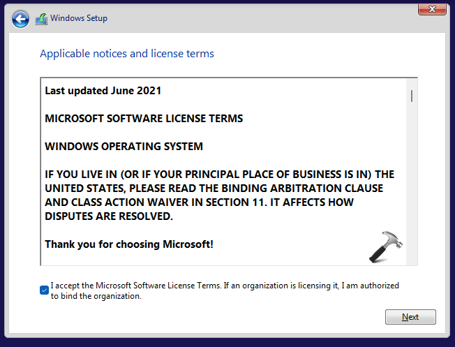 6.Akzeptieren Sie die Lizenzbedingungen und klicken Sie auf Weiter.