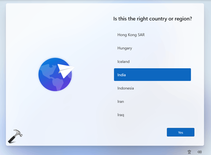 11.Beim Neustart des Systems sehen Sie zunächst das Windows 11-Logo. Dann dient der erste Bildschirm der OOBE-Einrichtung hier der Auswahl des Landes oder der Region. Wählen Sie Ihr Land oder Ihre Region aus und klicken Sie auf Ja.