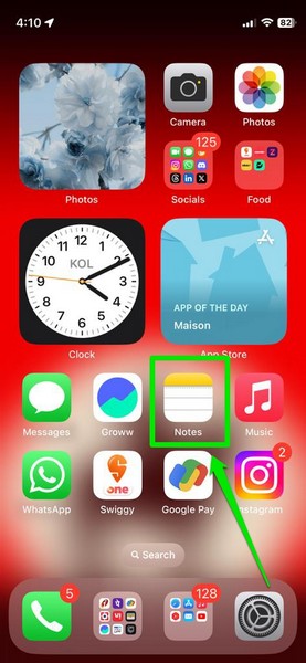 1.Starten Sie dieNotizen-Appauf Ihrem iPhone.