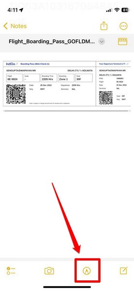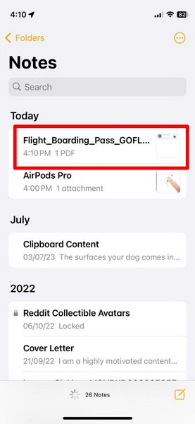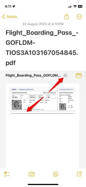Nachdem Sie nun die PDF-Datei, die Sie markieren möchten, in die Notes-App exportiert haben, können Sie die folgenden Schritte ausführen, um sie direkt in der App auf Ihrem iPhone in iOS 17 mit Anmerkungen zu versehen: