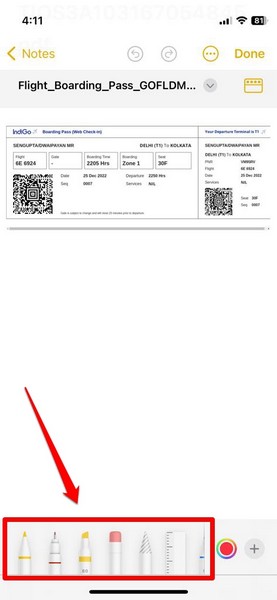 5.Sobald Sie auf die Markup-Option tippen, werden Sie dies tunFinden Sie alle Ihre Markup-Toolsin der unteren Menüleiste.