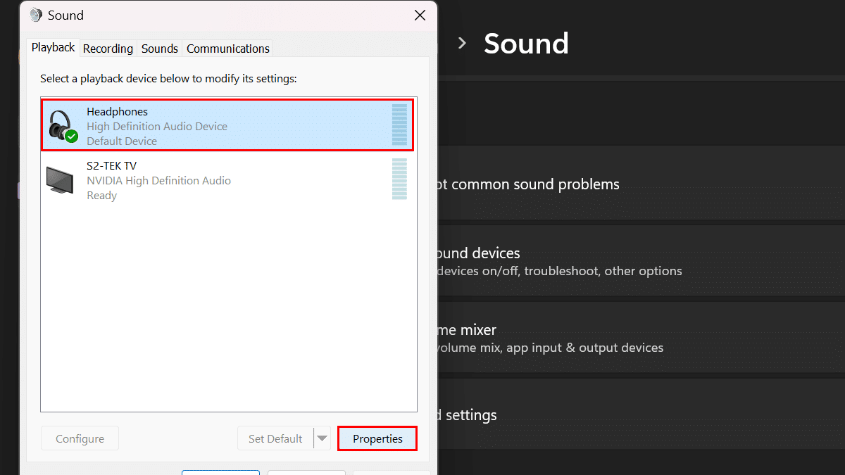 - Wählen Sie die ausAusgabegerät> klicken Sie aufEigenschaftenTaste.