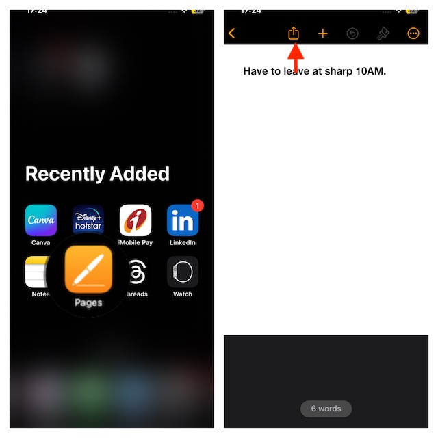 - Öffnen Sie zunächst die Pages-App auf Ihrem iPhone oder iPad.